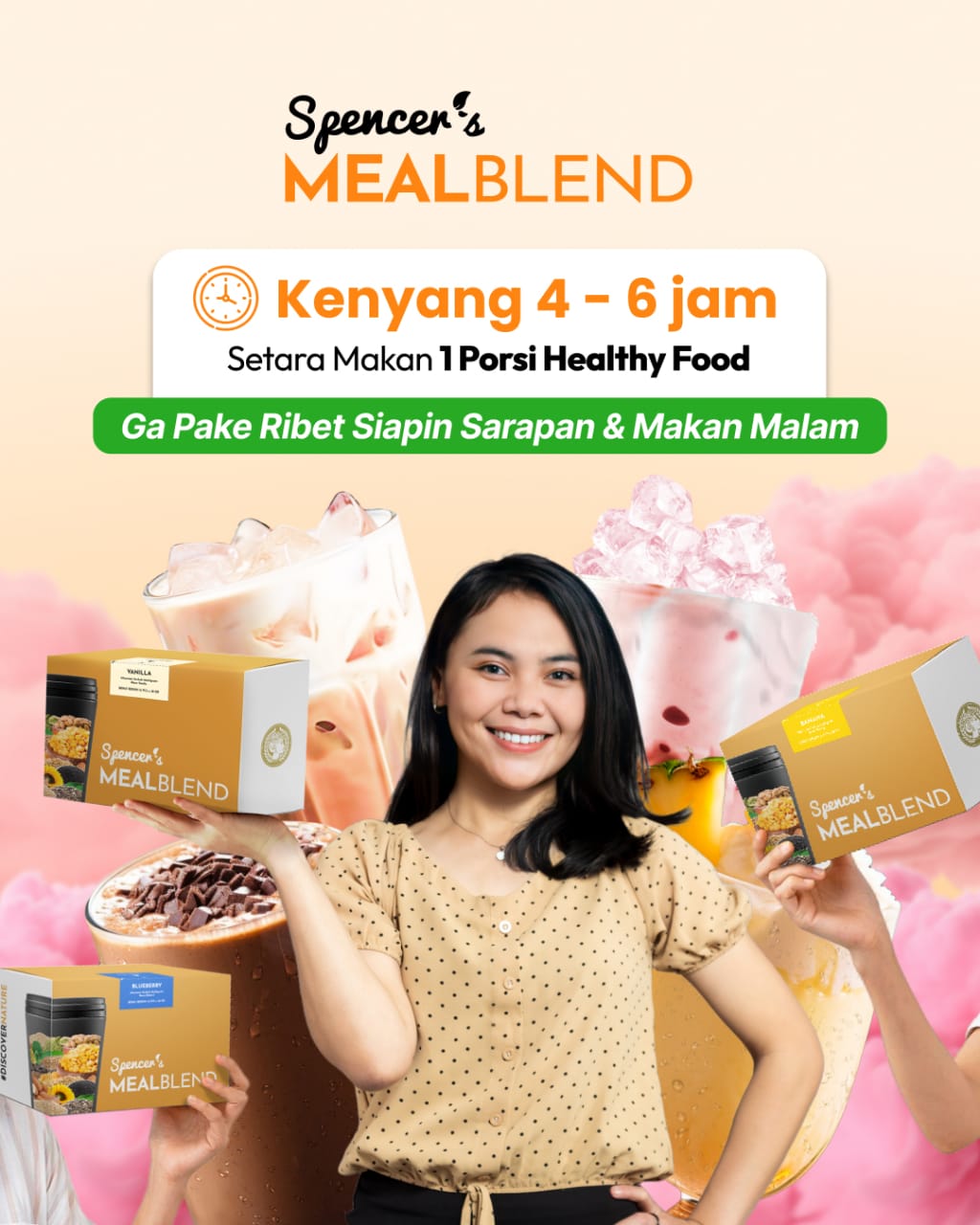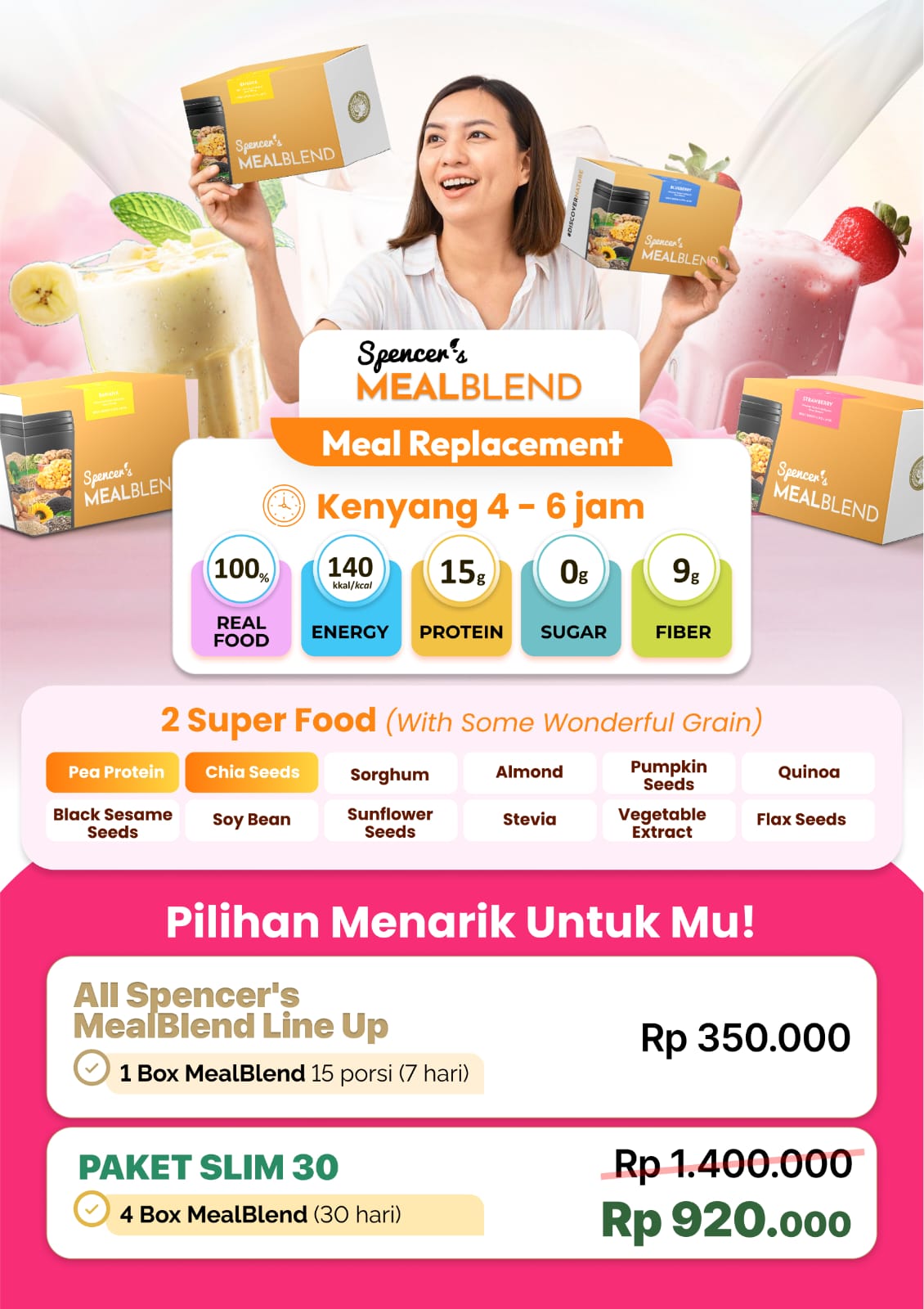 FAKTA LAINNYA, MEAL BLEND SPENCER’S bebas bahan kimia & gula tinggi (0.5 gram per sachet) cocok utk vegan, gluten-free