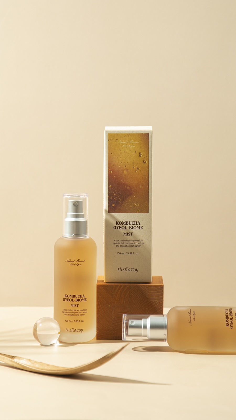 ElishaCoy Kombucha Face Mist adalah face mist vegan pertama di Indonesia yang mengandung 86% ekstrak Kombucha dari fermentasi teh hitam di Pulau Jeju selama 506 jam. Produk ini berfungsi untuk melembapkan, menenangkan kulit, memperbaiki skin barrier, dan membantu mengurangi tanda-tanda penuaan.